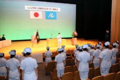 10月8日(金)に衛生看護科2年の戴帽式を行いました。式はコロナ禍の感染予防対策として、本校生徒・職員のみの参加としました。戴帽式は本格的な病院での臨地実習を前にその決意を固める大切な行事です。3年の代表生徒による「励ましの言葉」はとてもやさしく、戴帽生をあたたかく包み込むような言葉でした。また戴帽生代表の「誓いの言葉」はとても頼もしく感じられました。聖火を灯し、ナイチンゲール誓詞を唱える場面は厳粛で感動的でした。