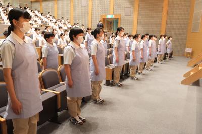 7月14日、福志式が行われました。福志式は健康福祉科2年生が、本格的に始まる実習に臨むにあたり、“福祉の心”“思いやり・優しさの心”を持って精進することを誓うものです。本式典には社会医療法人財団董仙会・社会福祉法人徳充会理事長神野正博様をはじめとした多くのご来賓、保護者の方々にご出席を賜りました。誠にありがとうございました。