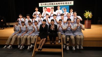 式典前には同級生の衛生看護科2年生から応援メッセージを、式典後には健康福祉科3年生から激励のプレゼントが送られました。