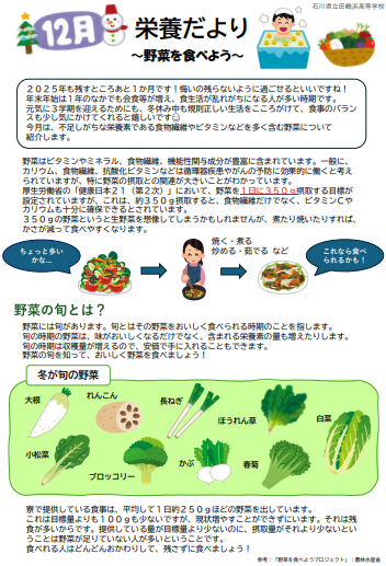 12月栄養だより・寄宿舎献立表