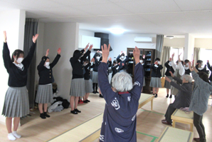 12月10日、衛生看護科2年生は垣吉地区仮設住宅を訪問してきました。健康体操やレクリエーションなどを住民の皆さんと一緒に行い、有意義な時間を過ごすことができました。コミュニケーションを通して、住民の方々から仮設住宅での暮らしのリアルを聞かせていただき、多くを考え、感じたことは、生活体験の少ない生徒達にとってとても貴重な機会となりました。温かく生徒達を受け入れ、時間を共有してくださった住民の方々に心から感謝申し上げます。ありがとうございました。