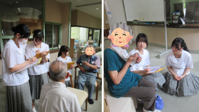 衛生看護科3年生は、地域の暮らしと健康課題について学ぶために、田鶴浜地区にある「さつき苑」で開催された「認知症カフェ」に参加し、地域の方々と交流しました。