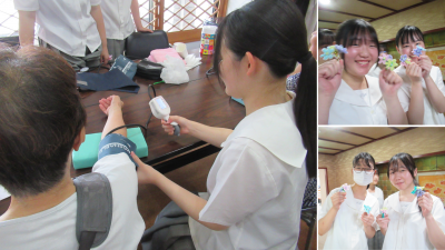 生徒の感想には、「さつき苑のように、定期的に地域の方が集える場所があることはとてもいいことだと感じた。家にいる時間が長いと話す機会が少なかったり、気分が落ちたりすることもあると思うけど、こうして外に出て集まることで気分転換にもなるし、話を聞いてもらったり逆に聞いたりすることで自分の悩みや思いを表出できて、気持ちが楽になったりすると思った。また、講師の方をお招きして講座を聞くことで健康を守るための知識が増え、日頃から健康に気を使って生活できるため、健康の保持増進にもつながると思った。」と述べており、フィールドワークが良い体験学習につながりました。今後も、地域の方々とのつながりを大切にして、継続していきたいと思います。