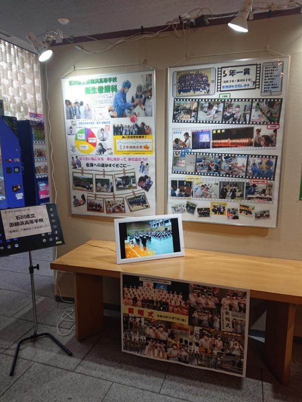 今年度 本校の展示期間は6月13日(火)~6月25日(日)です。衛生看護科、健康福祉科の生徒達の様子をパネルにして展示してあります。また、フォトフレームでも沢山の学校行事などを紹介しています。お近くに行かれた際には是非覗いてみてください。