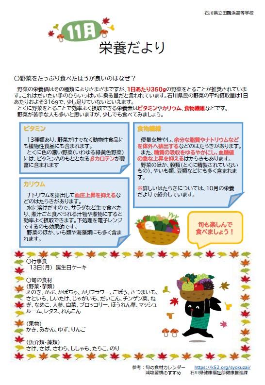 一覧へ 11月献立表・栄養だより 投稿日時: 2023/10/24 taturh 11月の献立表と栄養だよりです。ご覧ください。 R05_11月献立表.pdf R05_11月栄養だより.pdf(下記の画像と同様のものです)