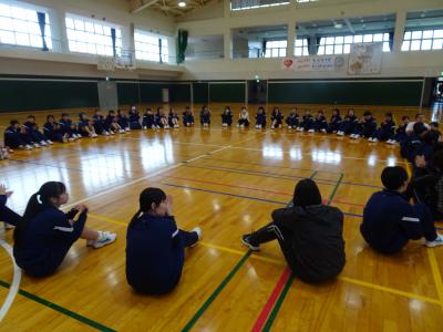 1年生 遠足 4月15日(火) 田鶴浜体育館まで遠足に行きました。昼食中は明るくなごやかな雰囲気で会話が弾みました。 レクリエーションでは笑顔であふれ、歓声が体育館に響きました。 学年とクラスの生徒の交流、生徒と教員との関わりが深まりました。