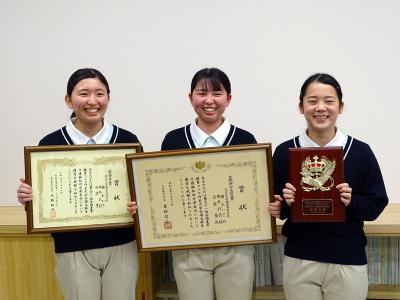 10月に行われた全国産業教育フェア全国高校生介護福祉研究発表会の表彰式が12月22日、校長室にて行われました。北信越地区代表として出場した 石倉 星さん(32H) 岡本 彩莉さん(32H) 楠 れいささん(32H)が受賞し、七尾市の取材も受けました。