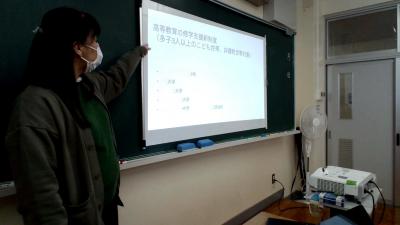 令和8年1月21日(水)昼休みを活用して、健康福祉科1・2年生のうち幼児教育・保育分野を志望する生徒を対象に校内で進路学習会を行いました。