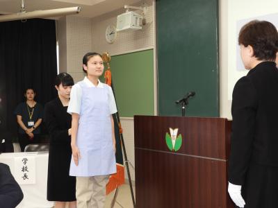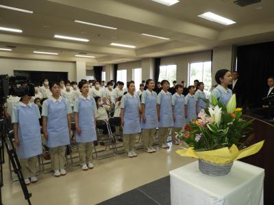 7月9日、福志式が行われました。福志式は健康福祉科2年生が、本格的に始まる実習に臨むにあたり、“福祉の心”“思いやり・優しさの心”を持って精進することを誓うものです。本式典には多くのご来賓、保護者の方々にご出席を賜りました。誠にありがとうございました。