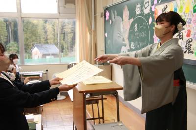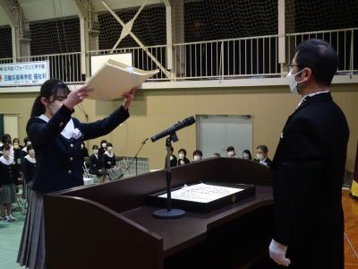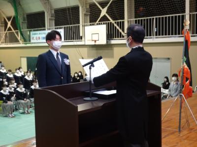 3月2日(木)、衛生看護科40名・健康福祉科34名が高校を卒業、衛生看護科専攻科39名が専攻科課程を修了しました。在校生は教室からZoomで参加し会場の保護者と共に卒業生・修了生を見守りました。卒業生・修了生の答辞は、3年間、5年間の想い出が蘇ると共にこれから進む道への強い意志も感じられ、心に残るものでした。最後に感謝の思いを全員で保護者に伝える場面は見ている者を温かい気持ちにさせました。