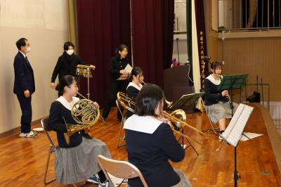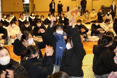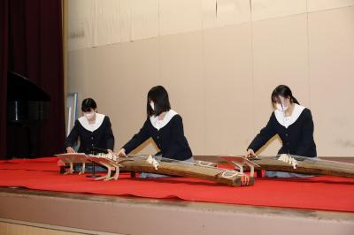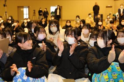 2月7日(金)に在校生が3年生を送る「予餞会」を行いました。昨年度は地震の影響でオンラインでの実施でしたが今年度は全校生徒が第一体育館に集まって実施することができました。各クラスや筝曲部、ブラスバンド部、軽音楽部などのさまざまな出し物がありました。生徒会が中心となり、1・2年生は、3年生に感謝の思いを伝えようと、クラス一丸となり準備を進めてきました。各ステージ発表に3年生はとても喜んでおり、時には涙ぐむ様子も見られました。生徒・教員全員が楽しむことのできた予餞会でした。