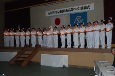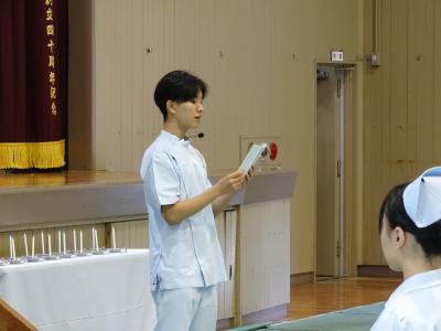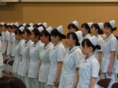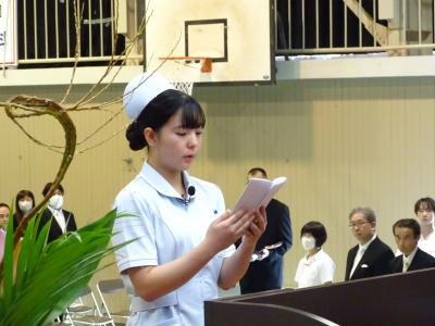 聖火点灯後には戴帽生全員で体育館に響き渡る力強い声でナイチンゲール誓詞を唱和しました。