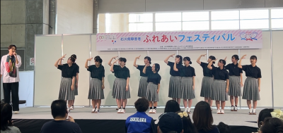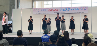 9月29日に県産業展示館で行われた「石川県障害者フェスティバル」のステージに手話部が出演しました。今回は、歌手の海蔵亮太さんスペシャルライブステージで、県立ろう学校、みのり園の皆さんと一緒に手話歌を披露しました。会場の皆さんと共にステージをつくり上げる楽しさを感じました。多くの方に見ていただくことができ、少しでも楽しんでいただけていれば嬉しいです。このような貴重な機会をいただき、ありがとうございました。