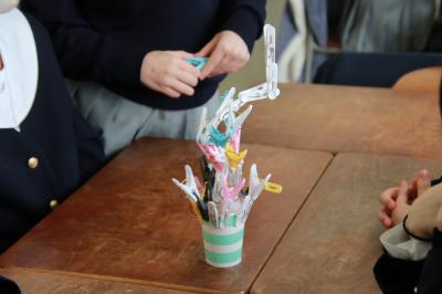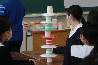 生徒たちは紙コップや洗濯ばさみなど、日常の中にあるものでも工夫次第で「レクリエーション」になるのだと気付くことができたようでした。