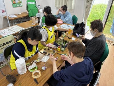 5月18日、七尾市内の応急仮設住宅「本府中町第1団地」のミニフェスに総勢19名で参加してきました。衛生看護科専攻科生によるストレスチェックや骨密度測定等の「健康チェック」と健康福祉科生徒による「クラフト体験」を行いました。