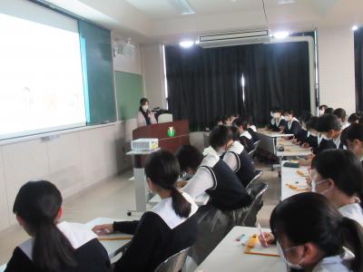 5月26日(金)の午後、本校卒業生を招き、進路講話を実施しました。これは地元を中心に活躍している卒業生の話を聞き、看護・福祉の専門職となる意識を高めるとともに、卒業生の職業人としての歩みを知り、自らの進路、生き方について考えることを目的として例年行っているものです。