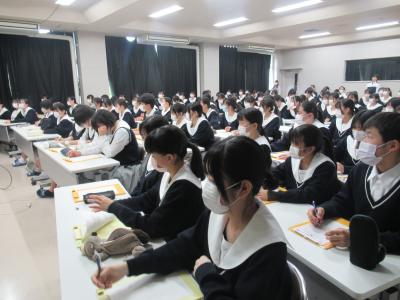 衛生看護科の生徒は看護師・助産師・保健師から、健康福祉科の生徒は介護福祉士、理学療法士、看護師から現場ならではの業務の内容や職種に対する熱い思い、そして高校生活の取り組みが進学就職後にどのように役立ったかお話しいただきました。参加した生徒は熱心にメモをとりながら先輩の話に聞