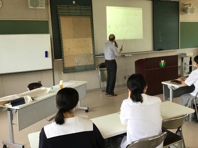 6月29日、2年生が地域の特色を活かしたふるさと教育推進事業の一環として、「地域創生の戦略と田鶴浜地域の魅力」について、田鶴浜地域づくり協議会会長 井上茂様からお話を伺いました。田鶴浜の歴史を由緒ある掛け軸に示された地図をもとに、今の田鶴浜に繋がってるのか丁寧に教えていただきました。後半には、田鶴浜の現状とこれまでの本校生との関わり、地域が抱える課題やこれからの地域づくりについて学ぶことができました。これまでも、これからも田鶴浜高校は地域の一員であると再確認できた1時間でした。