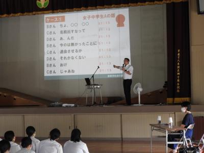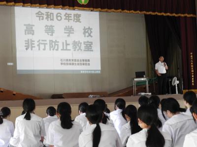 7月18日(木)、石川県教育委員会より山下 陽介氏、七尾警察署より小西 裕子氏を講師としてお招きし、全校生徒を対象に非行防止教室を開催しました。