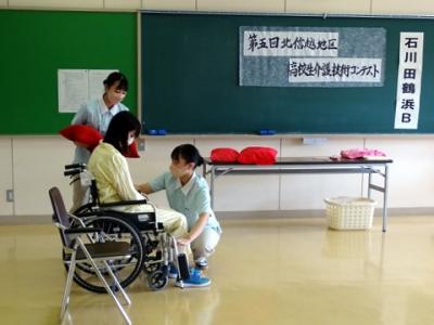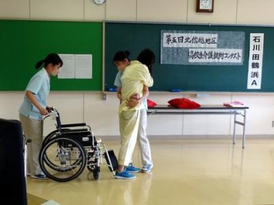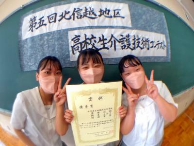 8月12日(金)第5回北信越地区高校生介護技術コンテストが福井県立奥越明成高等学校で行われました。健康福祉科3年生から本校代表として2チームが出場しました。