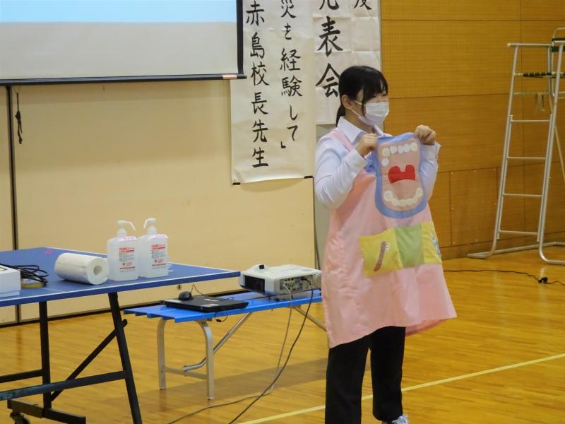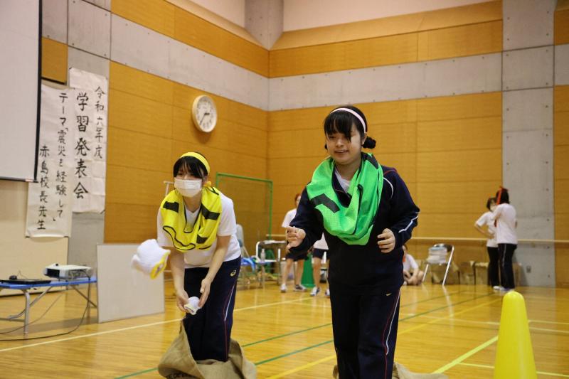 看護教育棟で避難訓練後、能登総合病院の体育館で学習発表会と体育祭を行いました。学習発表会では、「震災を経験して」というテーマで赤島校長による講演と専攻科2年生による保健所実習の課題の発表を行いました。各グループのテーマに合わせた発表や、改めて震災を振り返る機会となりました。また、体育祭では、各団が団結して楽しむことができました。