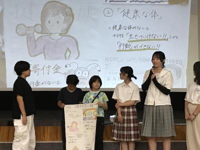 健康福祉科3年生4名が「近畿・北陸地域ASPnet校(ユネスコスクール)学びあい交流会」に参加しました。このプロジェクトは、近畿地域のユネスコスクールの児童生徒・大学生と北陸地域の小中高校生・大学生が、ともに若者として連帯して震災に向き合える学びを共有することを意図した交流会です。本校生徒は震災を経験した当事者として参加しました。約70名の近畿地区の小中高生とワークショップを通して交流しながら、「若者」の立場で持続可能な社会の実現にむけて、防災、復興などについて学びを深めました。