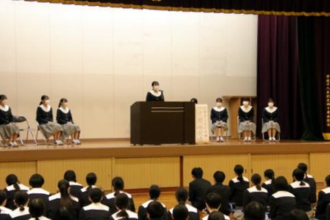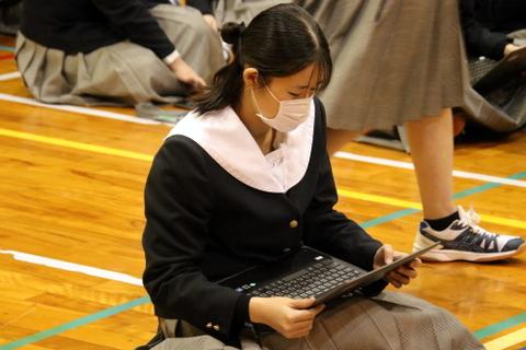 前期生徒会立会演説会・選挙を4月15日(金)に実施しました。立候補した8名はみんな自分の理想の学校生活や執行部としての活動目標を話し、立派に演説をしていました。投票はクロームブックを使用して行い、集計作業の短縮をしました。
