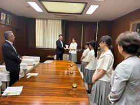 9月3日(水)手話部代表4名が9月14日鳥取県倉吉市で行われる『第12回全国高校生手話パフォーマンス甲子園』出場に向けて七尾市長を表敬訪問しました。12年連続出場を果たしているのは全国でも本校のみとなりました。部長の衛生看護科2年生加納実奈さんは、「全国大会に出場できるのは、多くの皆さんの応援があってのことです。その感謝の思いと手話の魅力が少しでも多くの人にお届けできるように、精一杯パフォーマンスしてきます」と決意を述べました。また、七尾市長さんからは「連続出場しているたった一つの学校が七尾市にあることは、とても素晴らしいことです。緊張もあると思いますが、頑張って来てください」と温かい激励を頂きました。これまでの応援を胸に、県立ろう学校とともに精一杯のパフォーマンスをしてきます。