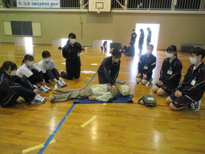 令和6年4月26日(金)に田鶴浜高校の看護科の生徒が一堂に会し、一次救命処置の研修