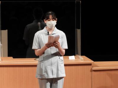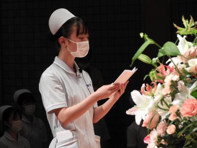 戴帽生代表からは、「これまで学んできた看護の知識や技術を活かして、常に患者さんの声に耳を傾け、笑顔を忘れず真心を持って接していきたい。また、看護をする上で重要となるコミュニケーションについて学び、人間性を高めていきたい」と力強い「誓いの言葉」が述べられました。