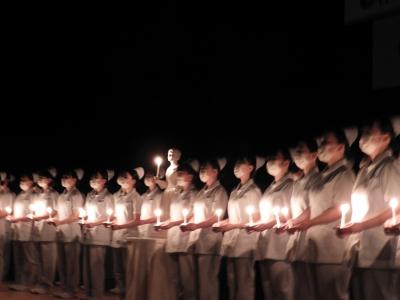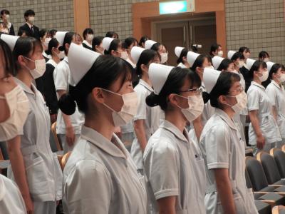 その後、ナイチンゲール像から灯火を受け取り、ナイチンゲール誓詞を斉唱しました。厳かな雰囲気の中で行われた戴帽式は、とても感動的でした。