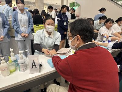 10月25日(土)、イオンモール白山で行われた「いしかわ産業教育フェア2025」に衛生看護科、健康福祉科の生徒が参加しました。