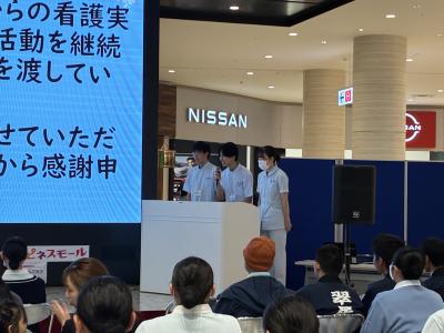 日頃の学習・活動における研究発表やパネルディスカッション、健康チェックやナース服体験、ハンドケアを実践するとともに、授業・活動についてまとめたパネル展示などを行いました。