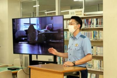 7月11日(月)4限目、七尾警察署より片嶋 健太氏,布久保 梨香氏をお招きし,全校生徒を対象に「防犯教室」を開催しました。今回は,コロナの感染拡大と熱中症の予防策としてオンラインで講話を聞き,護身術の実演と解説からは,力の弱い女性がどのように振り払って逃げるかの方法も学びました。「心の隙に」というDVD視聴の後,顔の見えない相手とのやりとりの怖さを改めて考えることができたという声もあり,生徒たちが夏休み前に,危機管理意識を持つ有意義な講演会となりました。