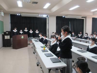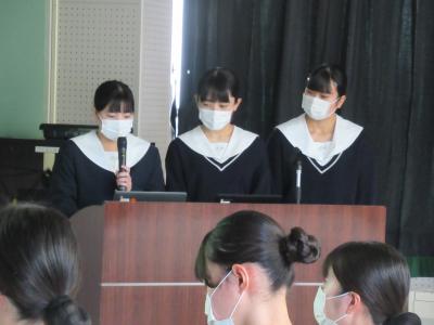 高校2年生は10月に戴帽式を終え、その後2週間能登総合病院・七尾病院での臨地実習に臨みました。実習での学びを教育ウィークである11月7日に、衛生看護科1・2年生と健康福祉科2年生を迎えて発表を行いました。