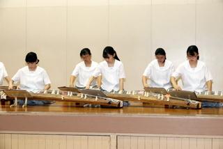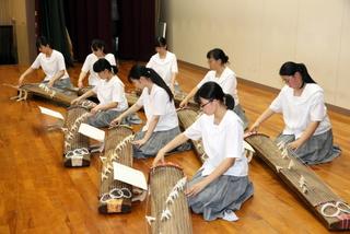 箏曲部が、『石川県高等学校総合文化祭「邦楽合同発表会」』に向けて、ビデオ撮影を行いました。本年度は、コロナ感染症予防対策ということで、ビデオでの参加となりました。曲目は、久本玄智(作曲)『三段の調』を演奏しました。1年生2名、2年生6名の計8名で、演奏を行いました。放課後の体育館で暑い中での演奏となりましたが、息の合った落ち着いた雰囲気で、暑さを忘れてしまうような優雅さが漂うよい演奏になりました。また、今回は演奏には参加しませんでしたが、2名の男子部員もいろいろとサポートしてくれていました。
