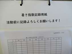 昨今の気候変動による熱中症対策として、保健課では活動時の※暑さ指数を記録し、激しい運動や持久走等の活動判断を実施しています。頭痛や吐き気など少しでも生徒の体調に変化が生じた場合、直ちに運動を中止して適切な対応をとり、症状によっては医療機関につなげます。また、経口補水液やアイスノン、氷を校内の複数箇所に常備し、教職員全員が生徒の体調管理に留意しています。