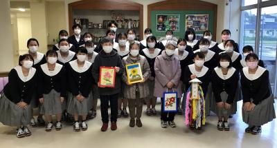 近くの「グループホームひかり」から利用者の皆さんが、健康福祉科3年生へ介護福祉士国家試験の激励に来てくださいました。利用者の皆さんが、心を込めて折ってくださった千羽鶴もいただきました。実習先でいろいろと教えてくださった利用者さんが、実習後も応援してくださっていることが本当に嬉しかったです。国家試験に向けて、32H全員合格を目指して、ますます頑張ろうと思います。ありがとうございました。