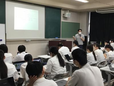 7月10日(月)に金沢大学 薬保健研究域保健学系 リハビリテーション科学領域 作業療法科学講座 准教授 米田貢氏(写真①)をお招きし、高校3年生(衛生看護科・健康福祉科)を対象に、認知症の方が体感していることを自分事として考える学習を行いました。