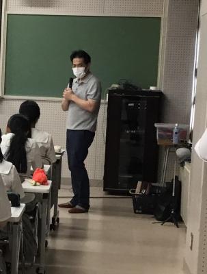 7月10日(月)に金沢大学 薬保健研究域保健学系 リハビリテーション科学領域 作業療法科学講座 准教授 米田貢氏(写真①)をお招きし、高校3年生(衛生看護科・健康福祉科)を対象に、認知症の方が体感していることを自分事として考える学習を行いました。
