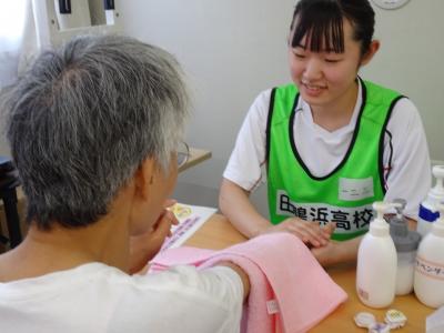 9月14日(土) に輪島市鵠巣の仮設住宅内の集会場でコミュニティーの再興を目的とした活動をしました。ハンドケア ・クラフト・血圧測定を地域の方に体験していただきながら、地域の方々とお話をしたり一緒にレクリエーションを楽しむことができました。地域の方から「仮設住宅で初めて会う人と友達になった。以前の地域の人とはまた違う人と友達になれて良かった」「今日はたくさん話せて嬉しかった」「ありがとう、楽しかった」と言葉をいただき、人と人とのつながりや癒し・楽しみの時間を提供することにより、私達のやりがいにも繋がりました。