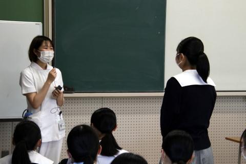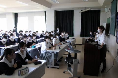 5月27日、本校卒業生を招き、進路講話を実施しました。進路講話は、地元を中心に活躍している卒業生の話を聞き、看護・福祉の専門職となる意識を高めるとともに、卒業生の職業人としての歩みを知り、自らの進路、生き方について考える機会を設けることを目的として例年行っているものです。