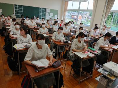 始業式は放送により行われ、校長先生の式辞、その後生徒指導課、保健課からのお話がありました。2学期も引き続き感染対策を十分行い、そして気持ちのよい挨拶を積極的に行っていこうと、全校生徒が気を引き締め、また学校生活がスタートしました。9月1日~30日はグッドマナーキャンペーン期間です。一人一人がグッドマナーとは何かを考えるよい機会です。校内校外問わず「行動」をしていきましょう。
