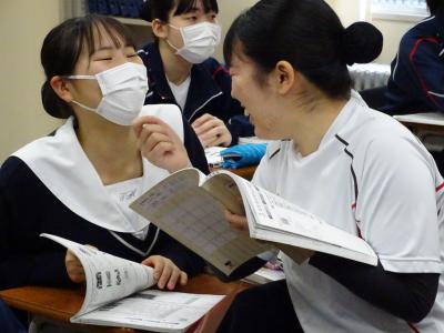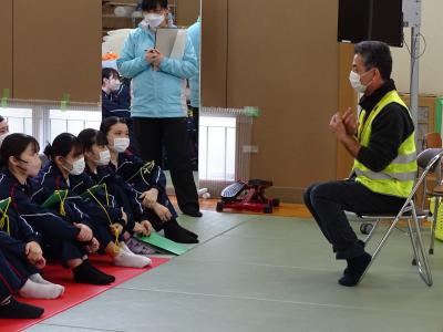2月20日に、現在鹿西高校で授業を受けている健康福祉科1・2年生が、田鶴浜高校の校舎に登校し、2ヶ月ぶりに教室で授業を受けるとともに、避難所の見学・体験学習を行いました。