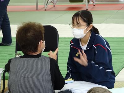 避難所見学やハンドケアを通して生徒は「生活の質を向上させるために驚くような工夫がされていることが分かりました」「話しながらハンドケアをしていると時間が経つのがあっという間でした」「テレビを見ているだけでは分からないような避難所の現実的な部分や設備を見ることができてとても良い経験ができたと思いました。今日得た知識を将来必要な場で生かせるようにしたいです」と感想を述べてくれました。
