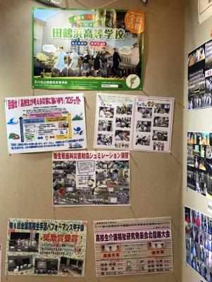 衛生看護科と健康福祉科の活動や生徒の活躍の様子をパネル等で紹介しています。