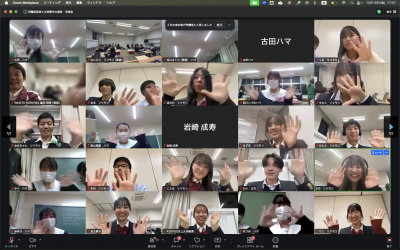 12月19日(金)に本校有志の生徒と立命館守山高等学校の生徒でオンライン交流会を実施しました。12月24日(水)に実際に本校・田鶴浜駅にて行う交流活動に先立ち、「会った時には大親友!」という目標の元、お互いの学校や地域について紹介し合いました。最初は緊張している様子だった生徒達も、会が終わる頃には笑顔でとても楽しそうに交流している様子が印象的でした。