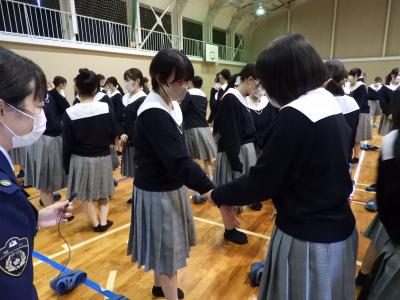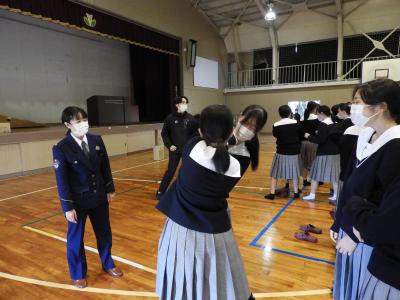5月9日(木)七尾警察署生活安全課職員、狩谷理美氏をお迎えし、防犯教室を実施しました。護身術の実演と解説をしていただき、女性でもできる様々な対処の方法を学びました。事例を通してお話していただき、生徒達の危機管理意識が高まる有意義な時間となりました。