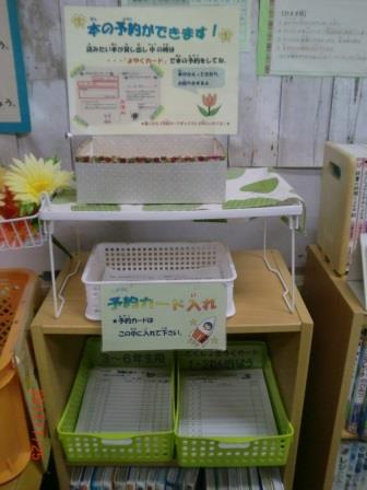 新しい本やおすすめの本などを予約して借りられる「予約券」がある。今年度は箱の中から紙がなくなるくらい積極的に予約して「読みたい!!」と思う子が増えてきている。