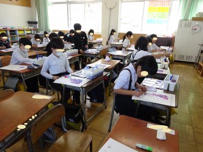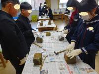 九谷焼陶芸館の方を講師に招き、陶片を選ぶ、割る、削る、貼り付ける工程を子ども達自身の手で行いました。授業の最後に、講師の方が「僕は湯野小学校出身で、小学生の時に学校で九谷焼をつくる学習をしました。東京の大学で美術の勉強をしていたとき、友達にその話をしたら、『自分たちはそんな経験がない、うらやましい』と言われました。皆さんが、今回体験していることは、本当にめずらしく、素晴らしいことなのです。」と、子ども達に話をしてくださいました。